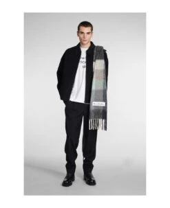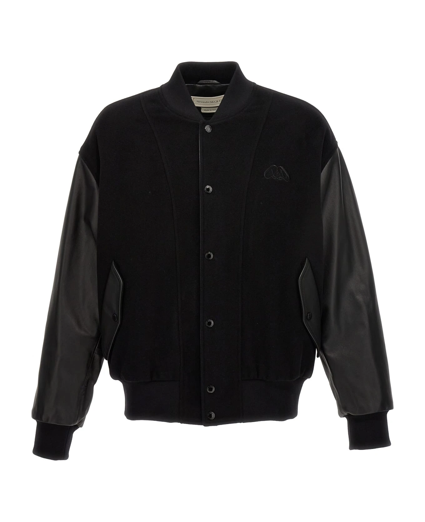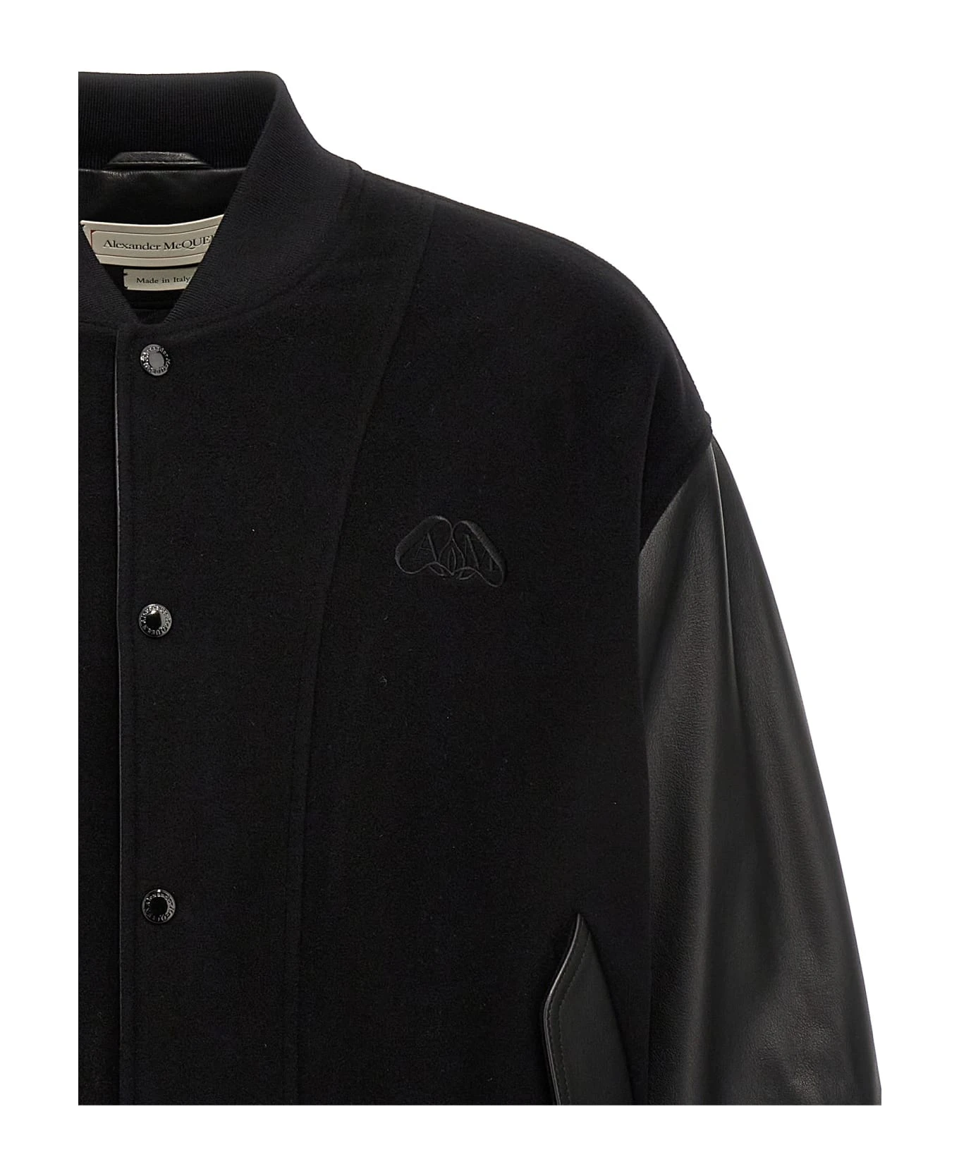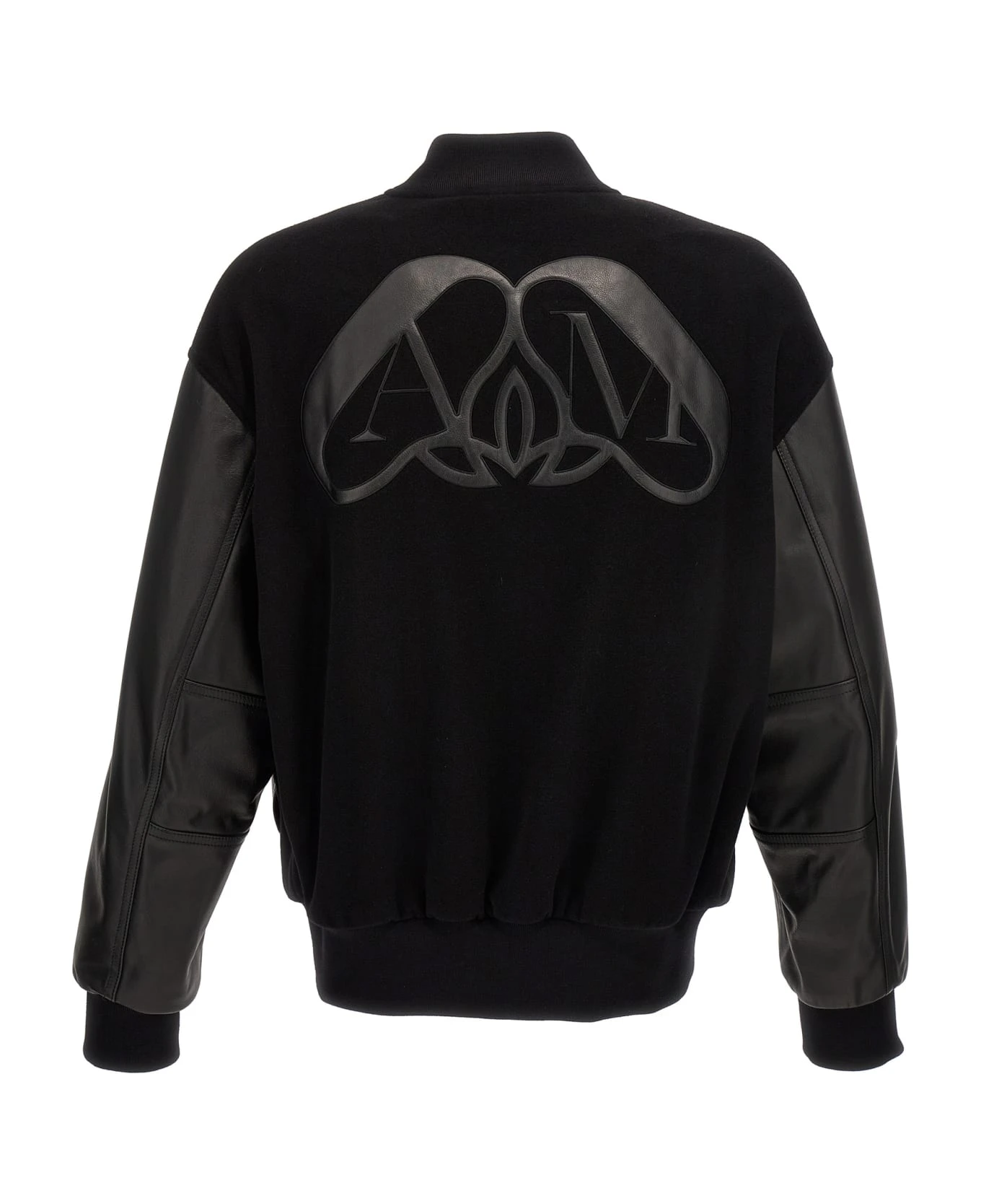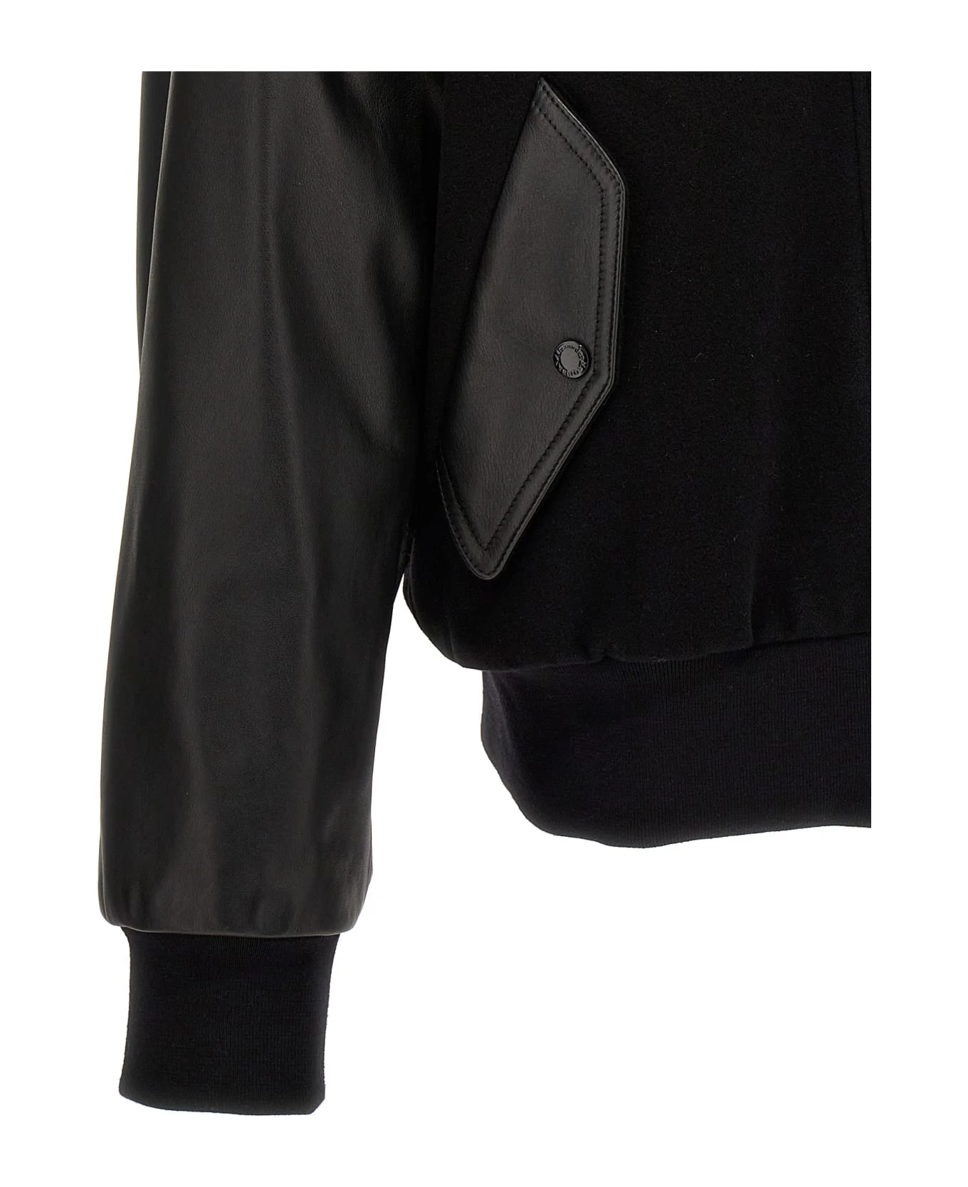Wool and cashmere bomber jacket with leather details, logo embroidery on the front and back, bottini closure, pockets, and long sleeves with knitted cuffs.