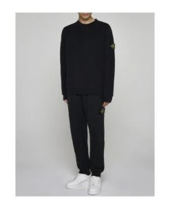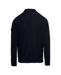 Stone Island Blue T-shirt With Long Sleeves And Side Logo Patch In Wool Man