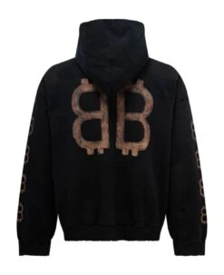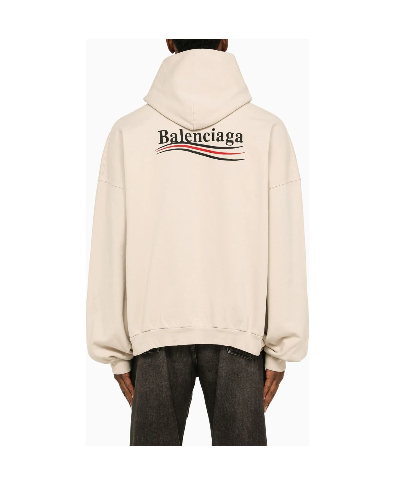 Beige cotton jersey oversized sweatshirt from Balenciaga featuring a fixed hood, Political Campaign logo and pouch pocket on the front.