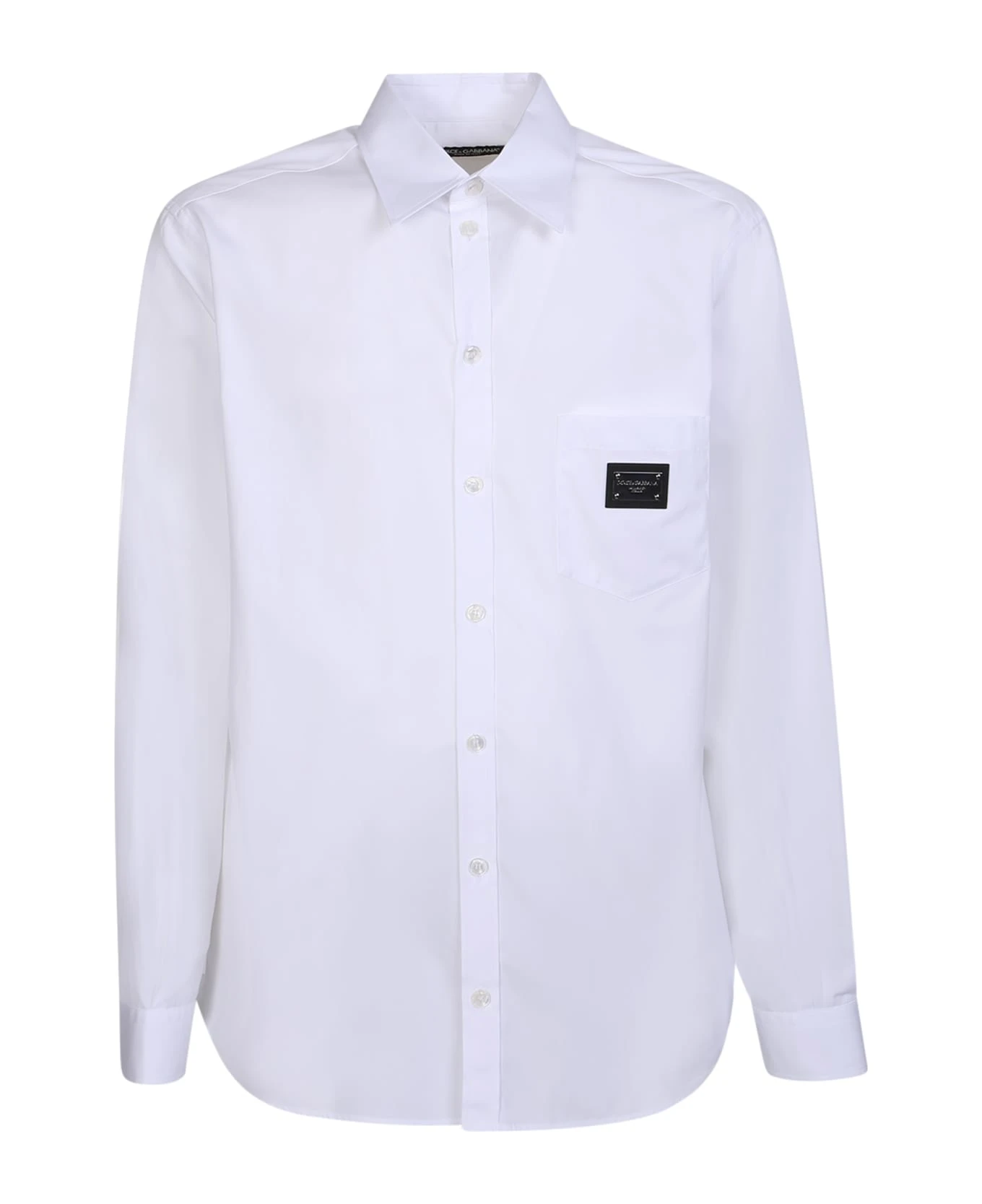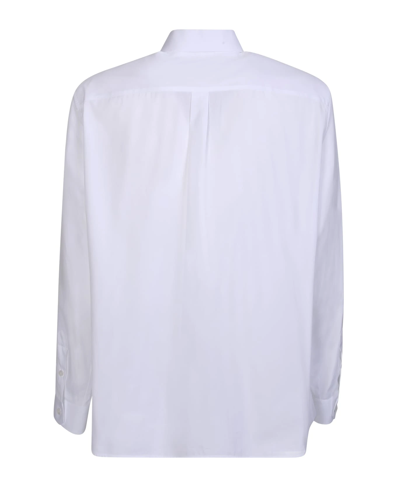 Classic collar. Front button fastening. Long sleeves. Buttoned cuffs. Chest patch pocket. Logo patch at the chest. Straight hem. Color: white