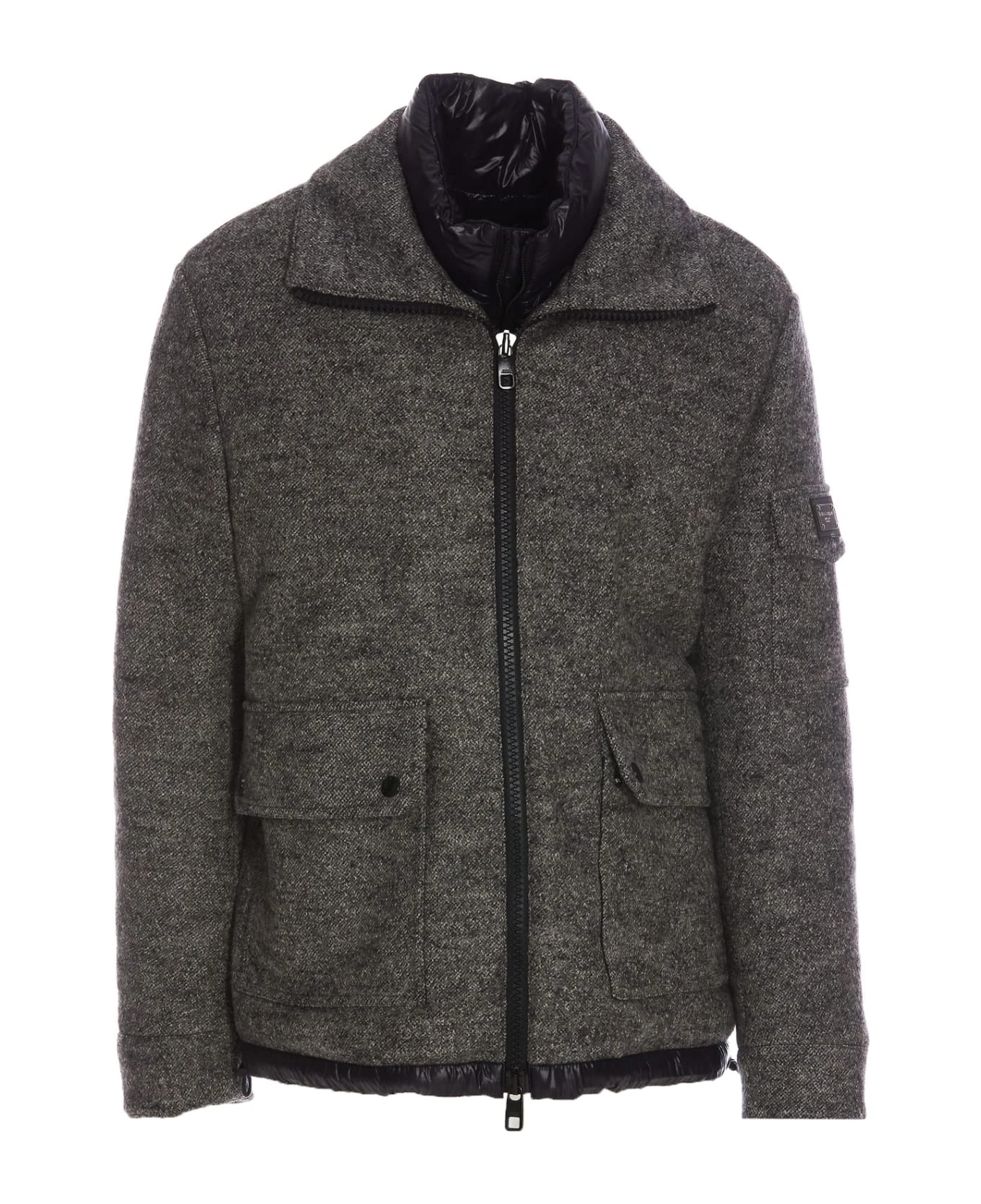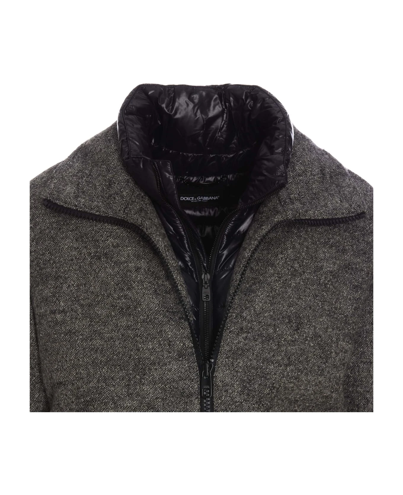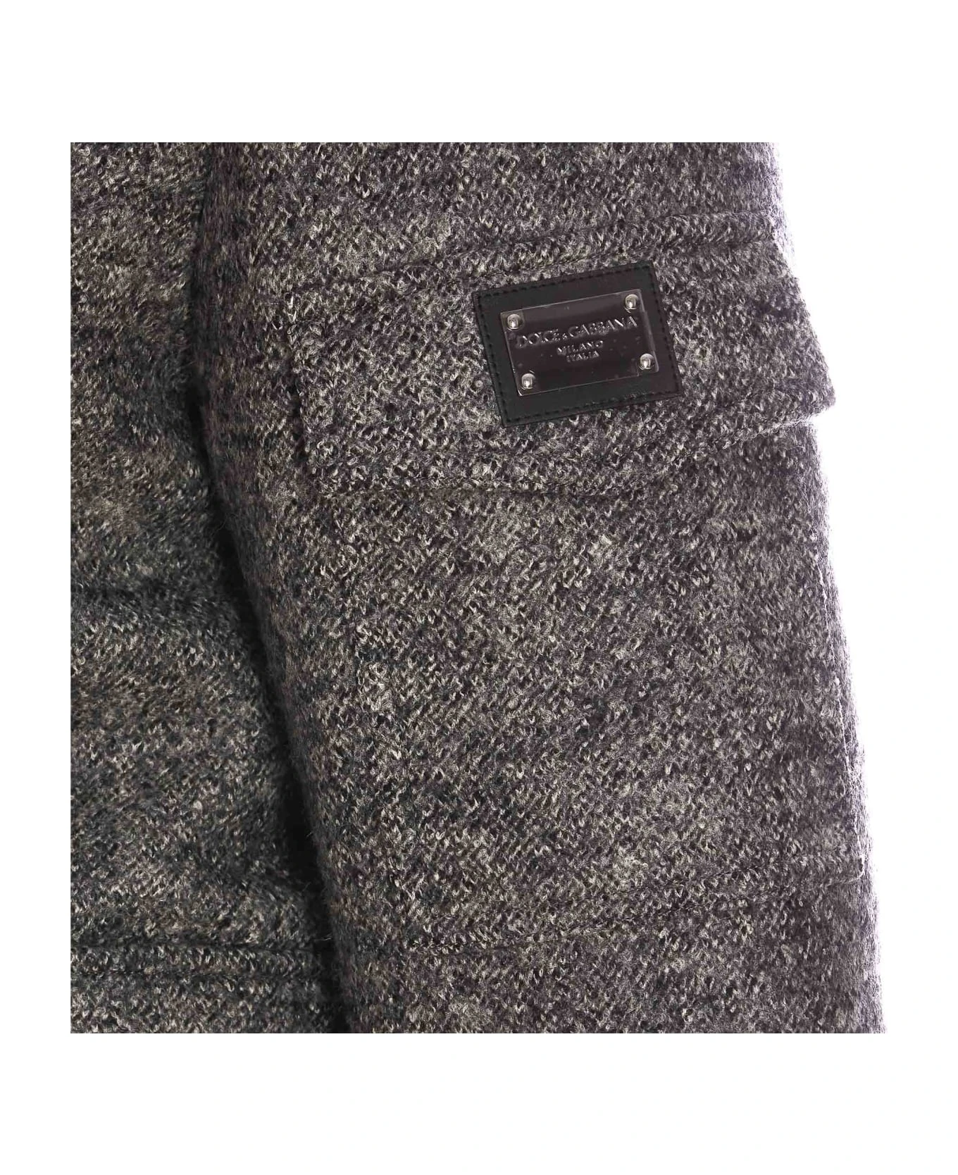 Dolce&Gabbana grey down jacket with frontal zip closure, padded, pockets with button closure, long sleeves, lateral patch logo