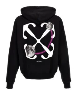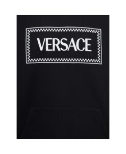 Versace Black Hoodie With Contrasting Logo Lettering Print In Cotton Man