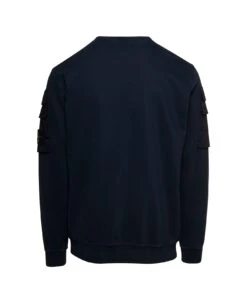 Stone Island Blue Crewneck Sweatshirt With Pockets On Sleeves And Logo Patch In Cotton Man