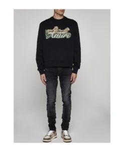 Black Crewneck Sweatshirt With Amiri X Eden Rock Print In Cotton Man