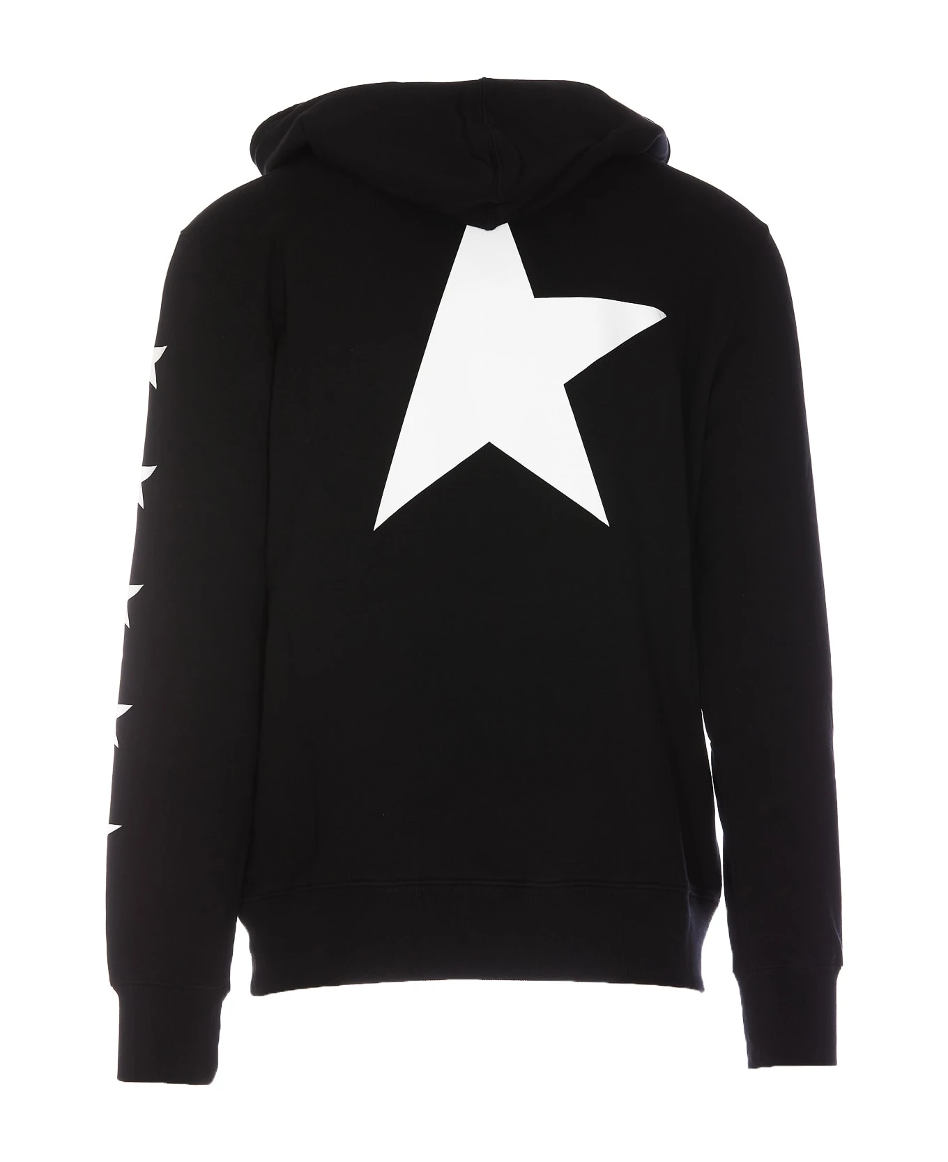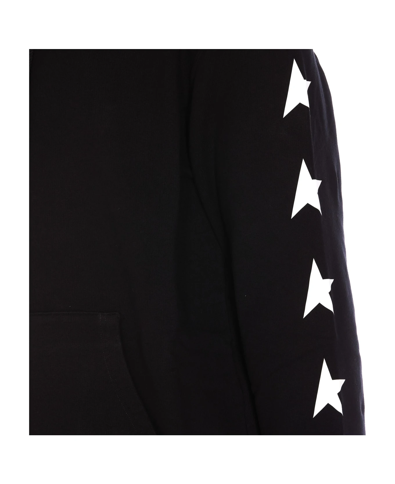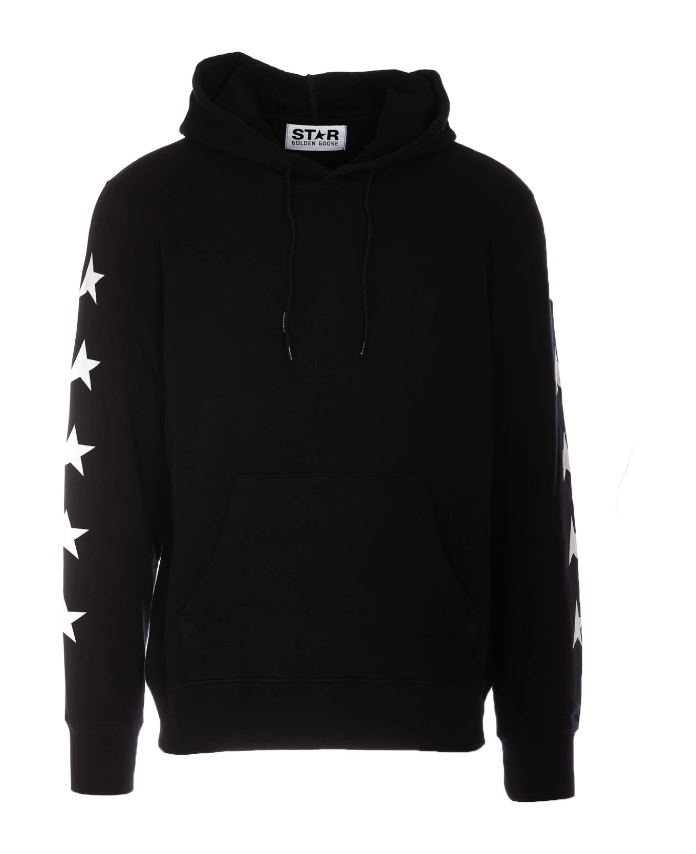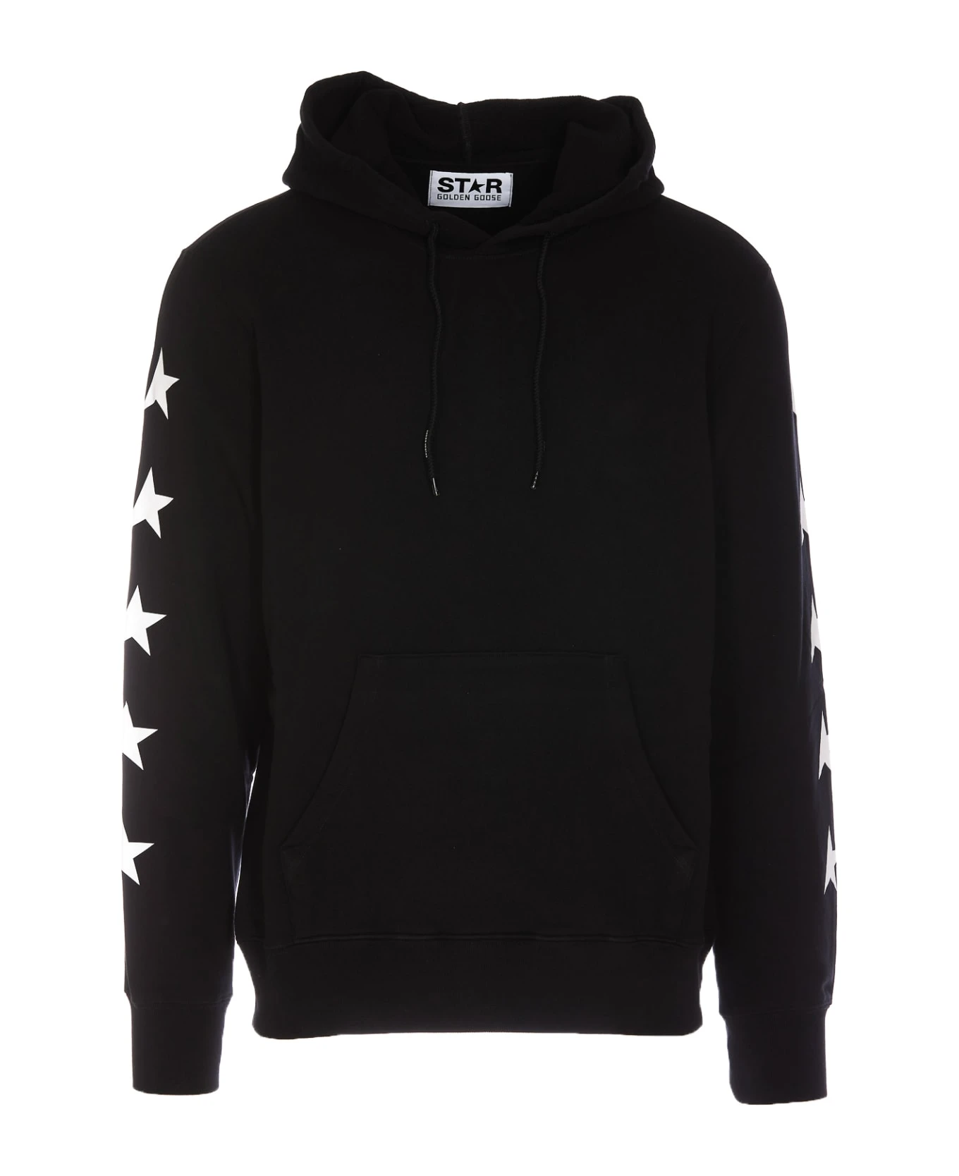 Golden Goose black Multi Star hoodie, coulisse on the front and frontal kangaroo pockets, lateral star logo on sleeves and cuffs