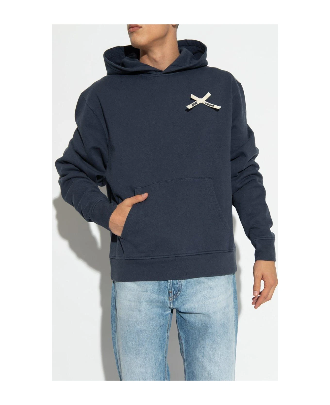 Stone Island Blue T-shirt With Long Sleeves And Side Logo Patch In Wool Man