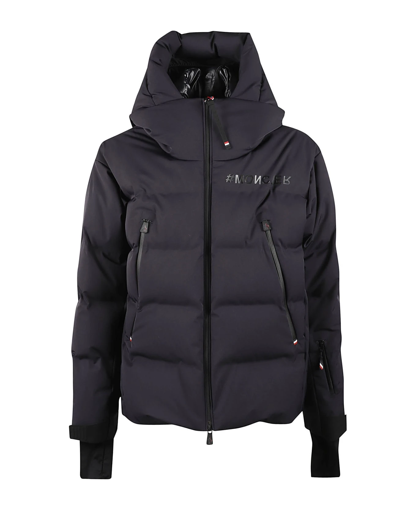 midnight blue quilted logo print at the chest slouchy hood front two-way zip fastening long sleeves logo print at the sleeve sleeve zip pocket thumb slots two side zip-fastening pockets straight hem