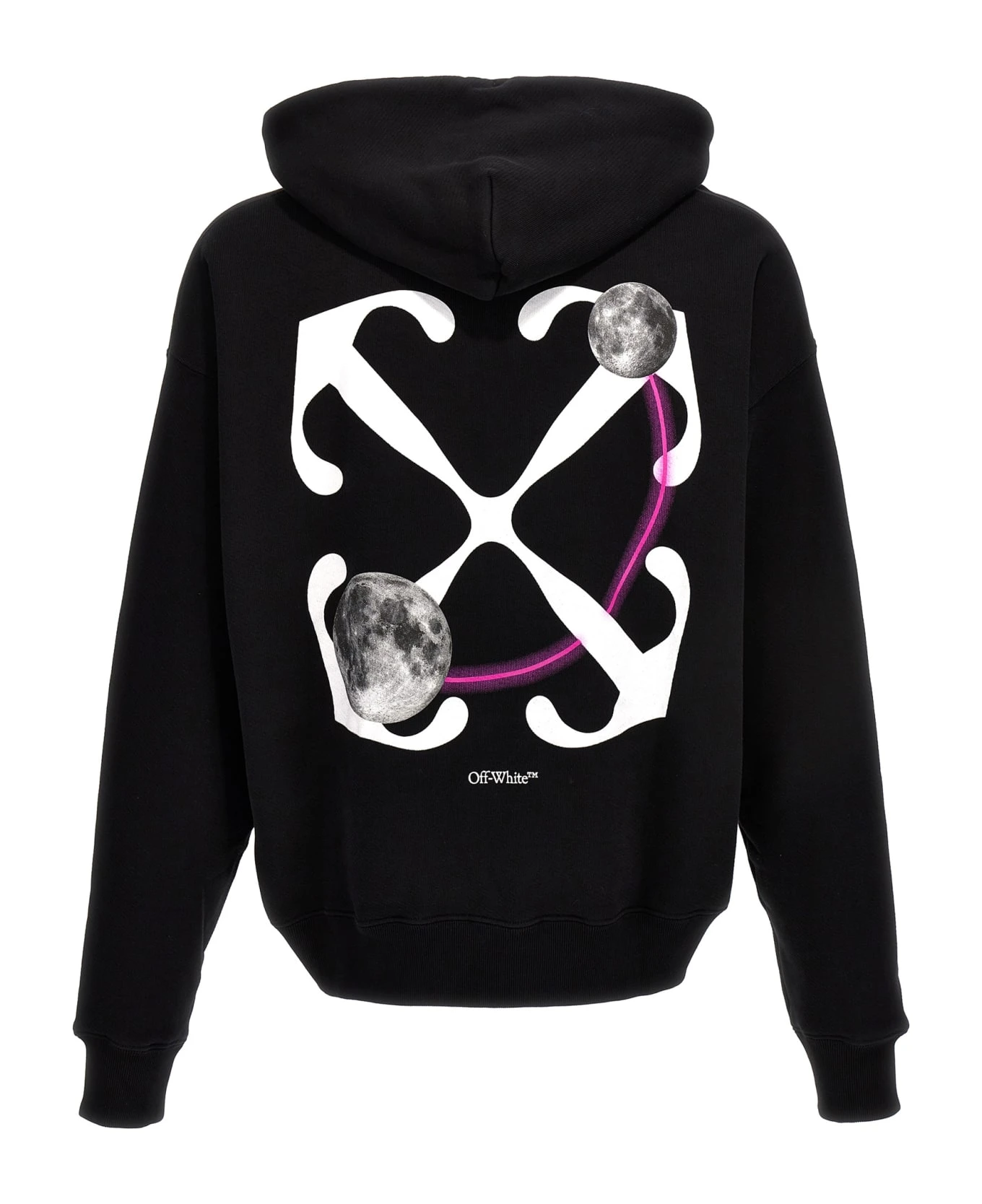 ‘Moon Arrow Skate’ cotton hoodie with back print, front logo, kangaroo pocket, long cuffed sleeves.