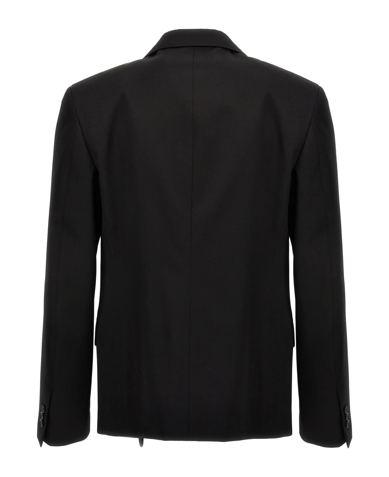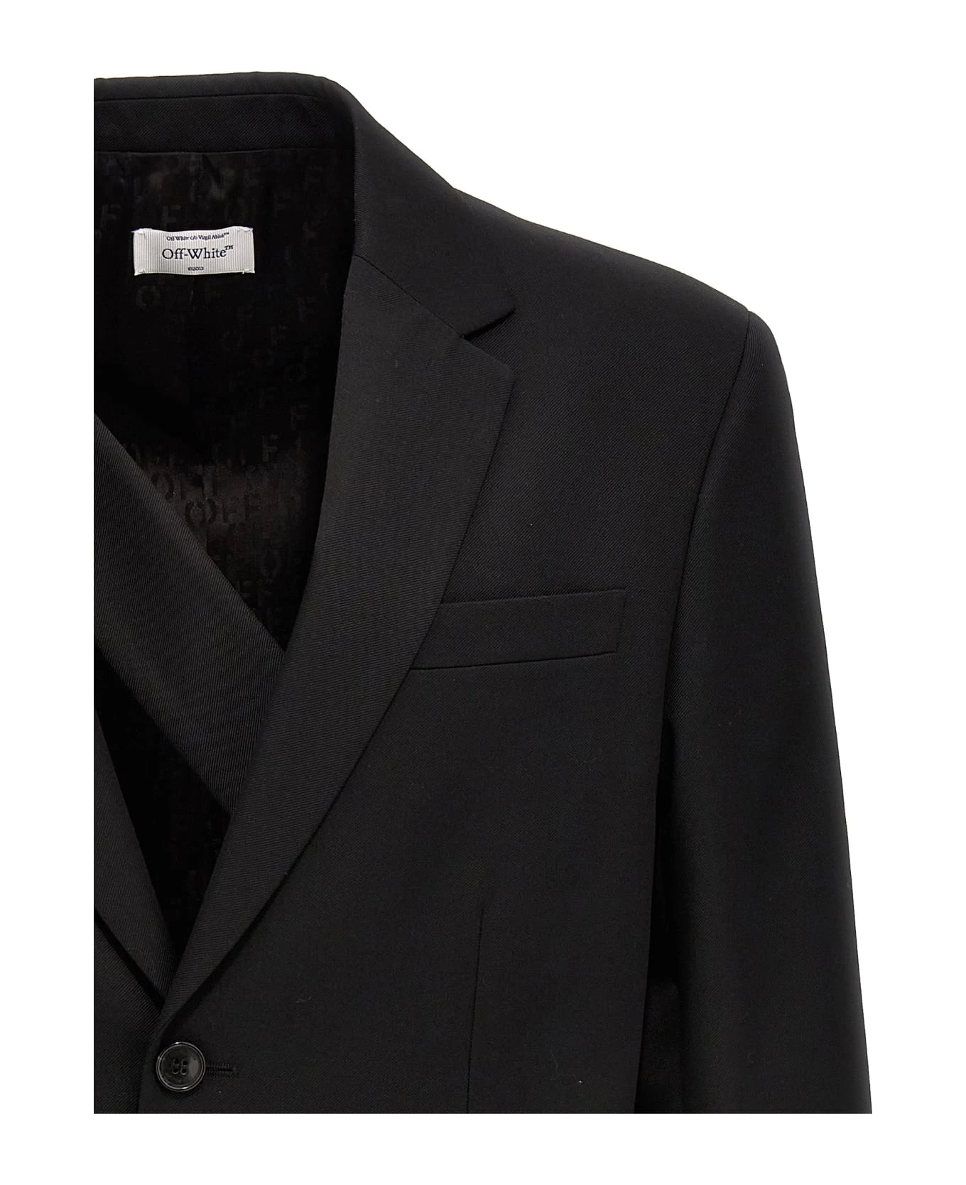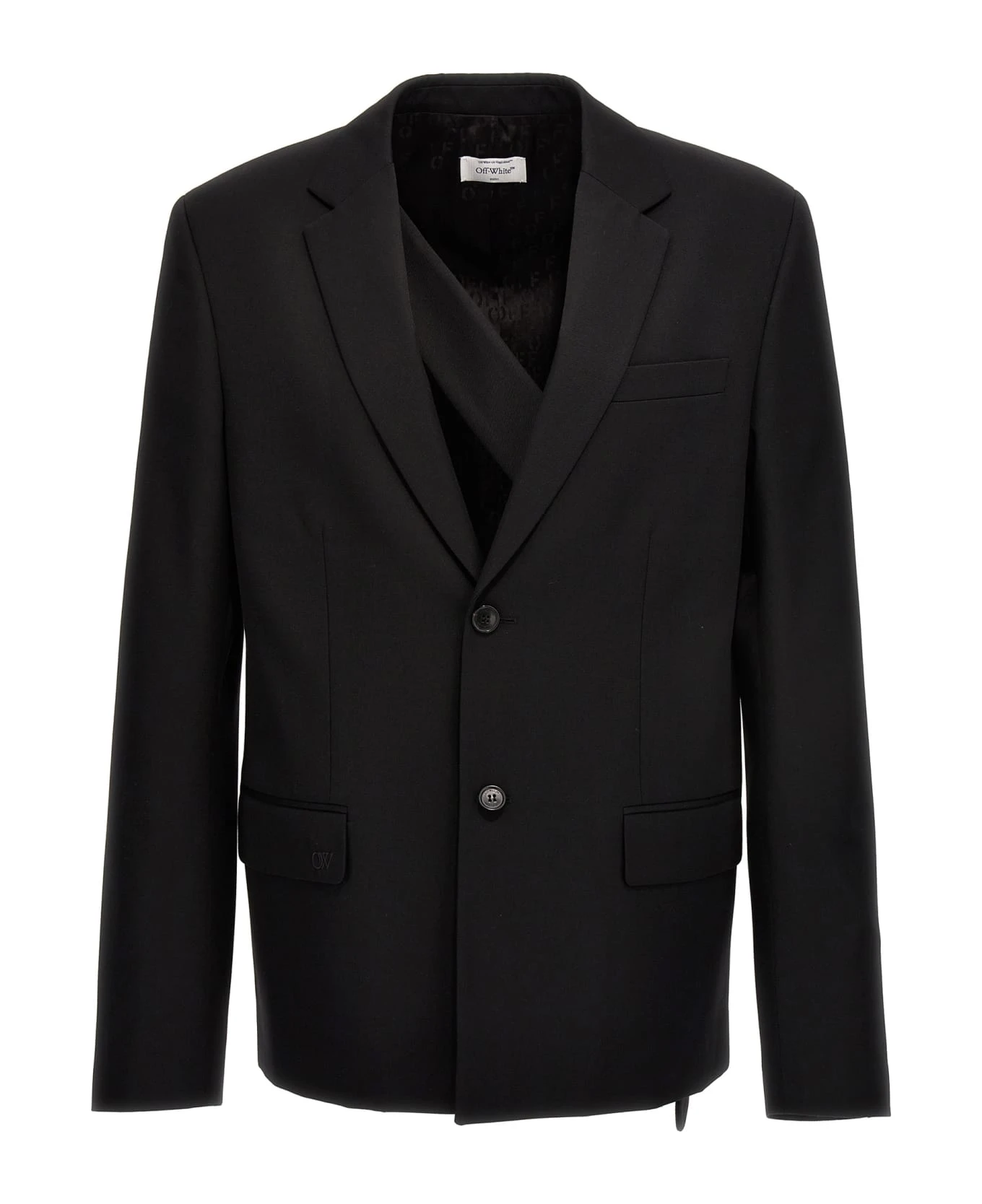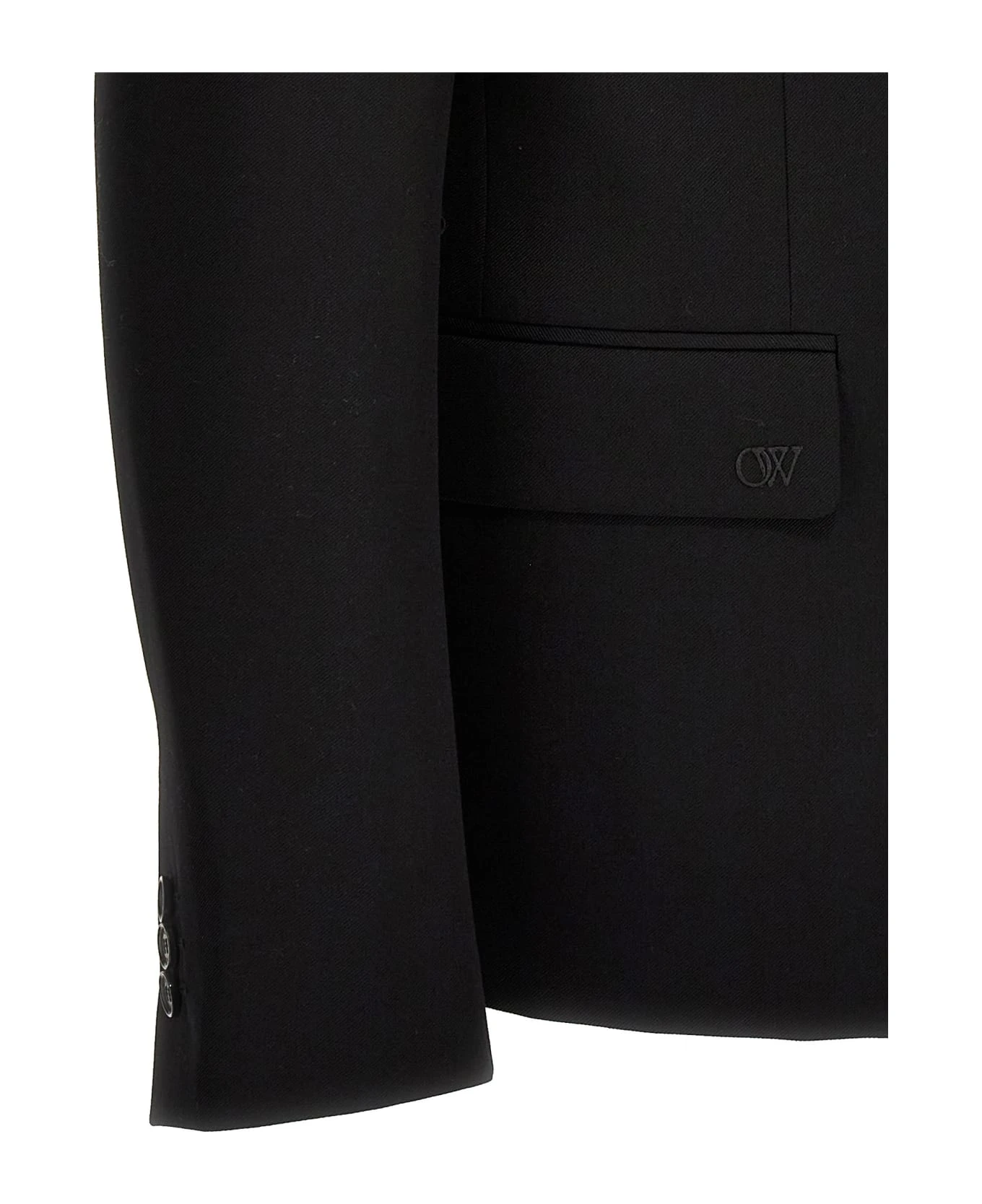 ‘OW Embroidery’ single-breasted wool blazer with button closure, pockets, long sleeves, inner shoulder strap.