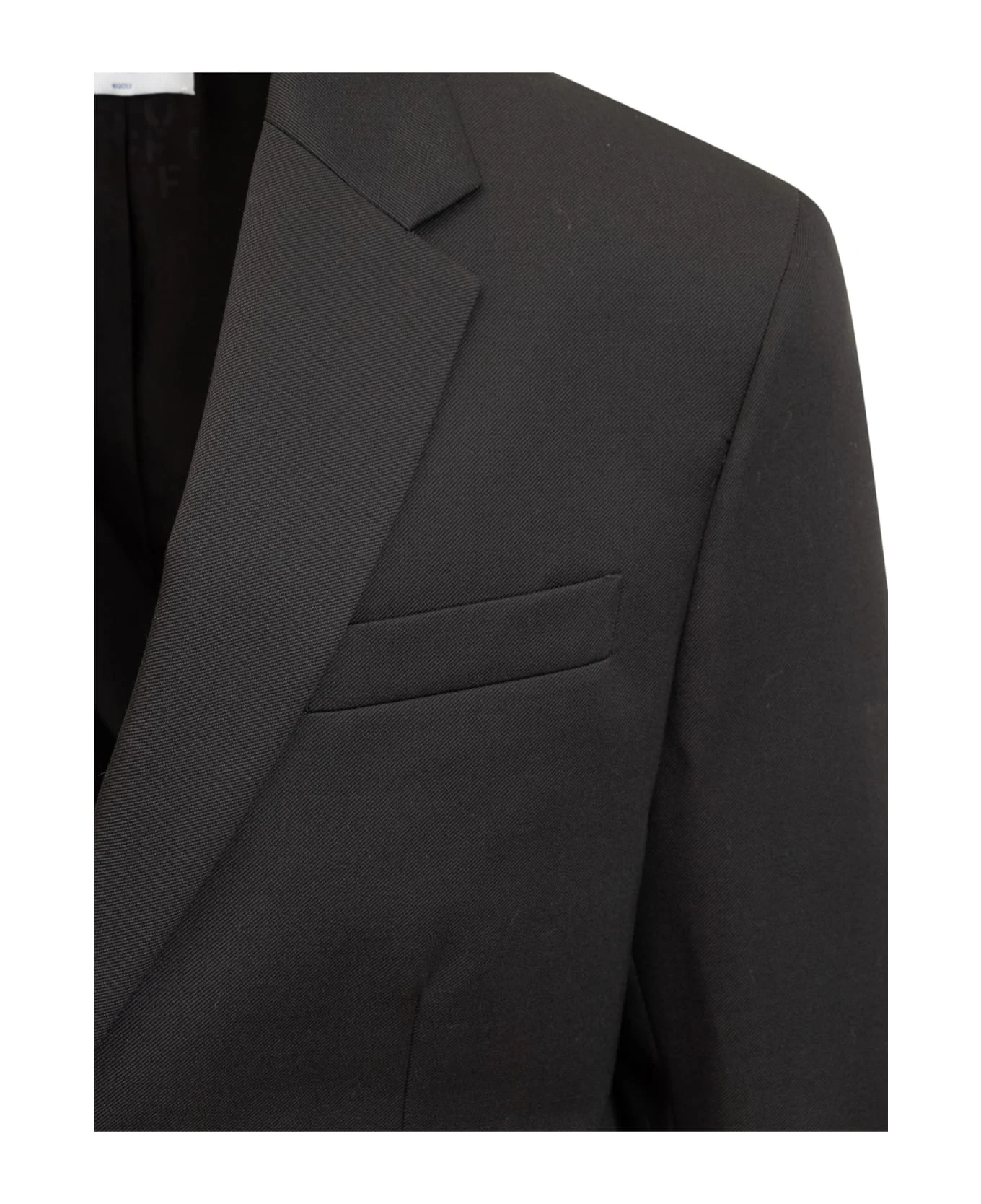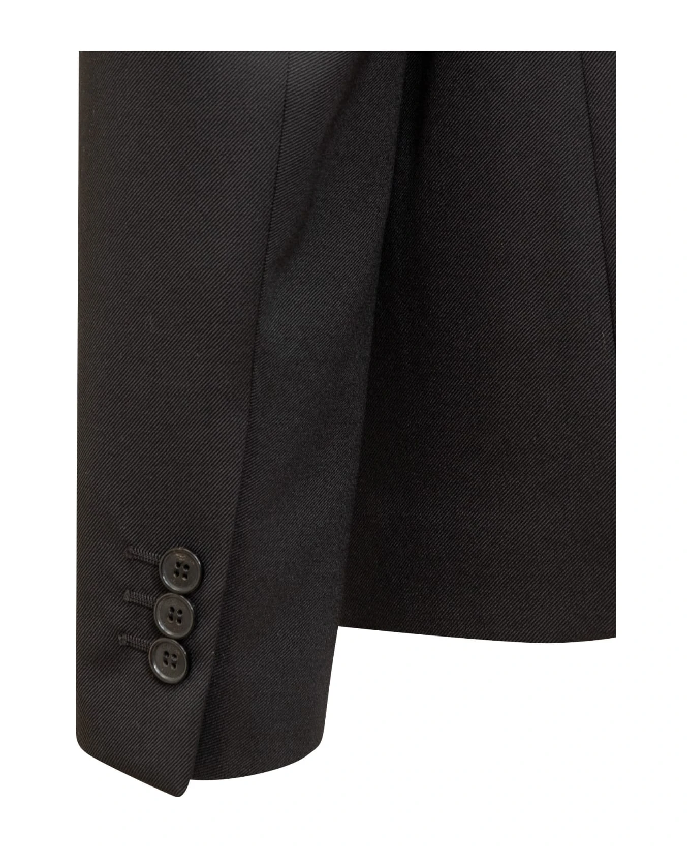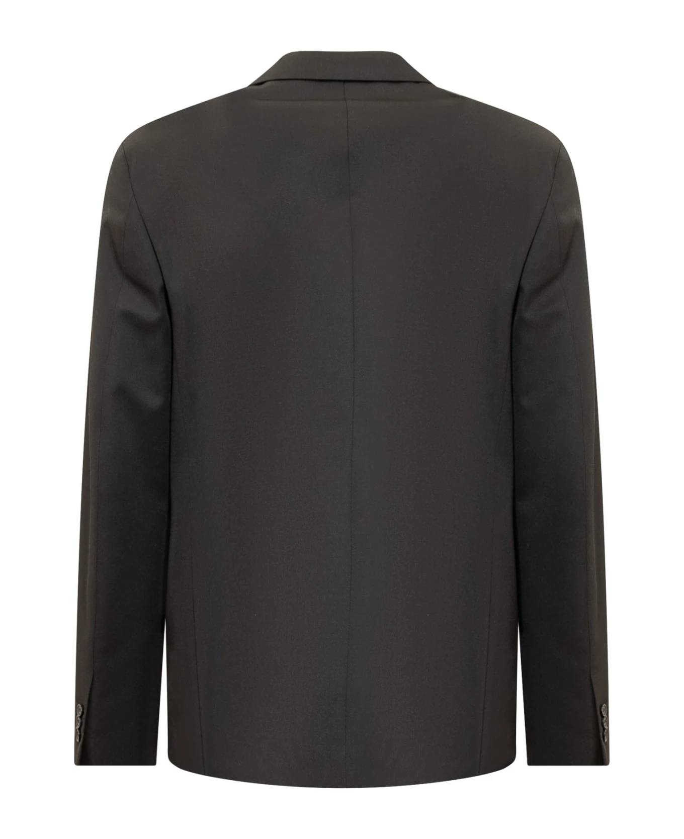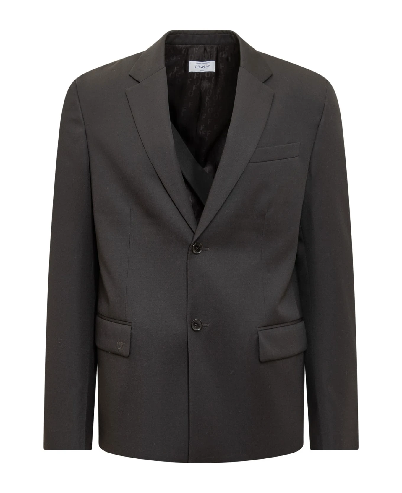 Black blazer with long sleeves. Single-breasted. Button closure. Embroidered logo. Chest pocket. Front pockets. Buttons at the cuffs.