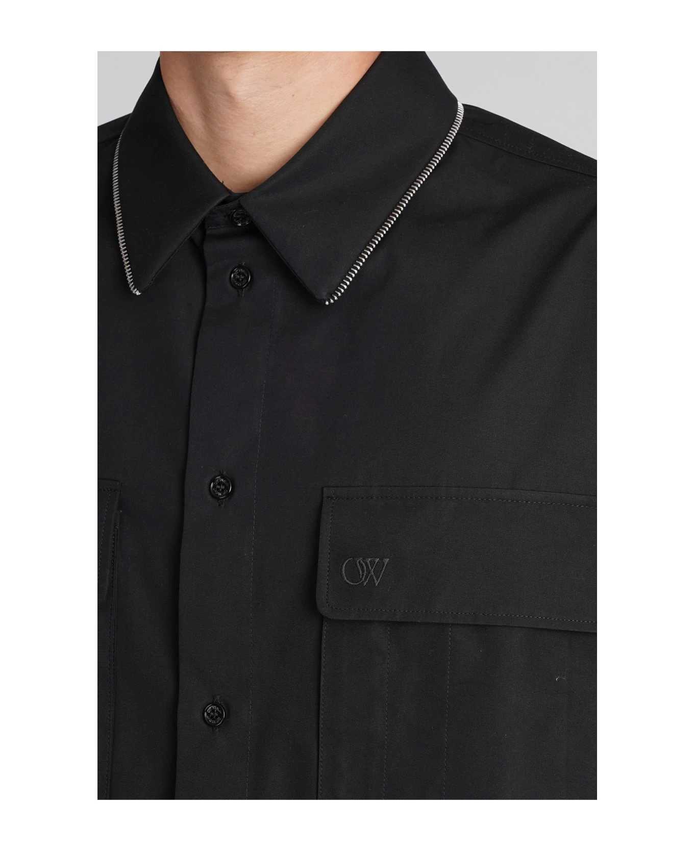 Shirt in black cotton, collar, flap pockets, long sleeves, frontal buttoning, zip detail, 100% cotton, Made in Italy, Model is 1. 83 and wears size M