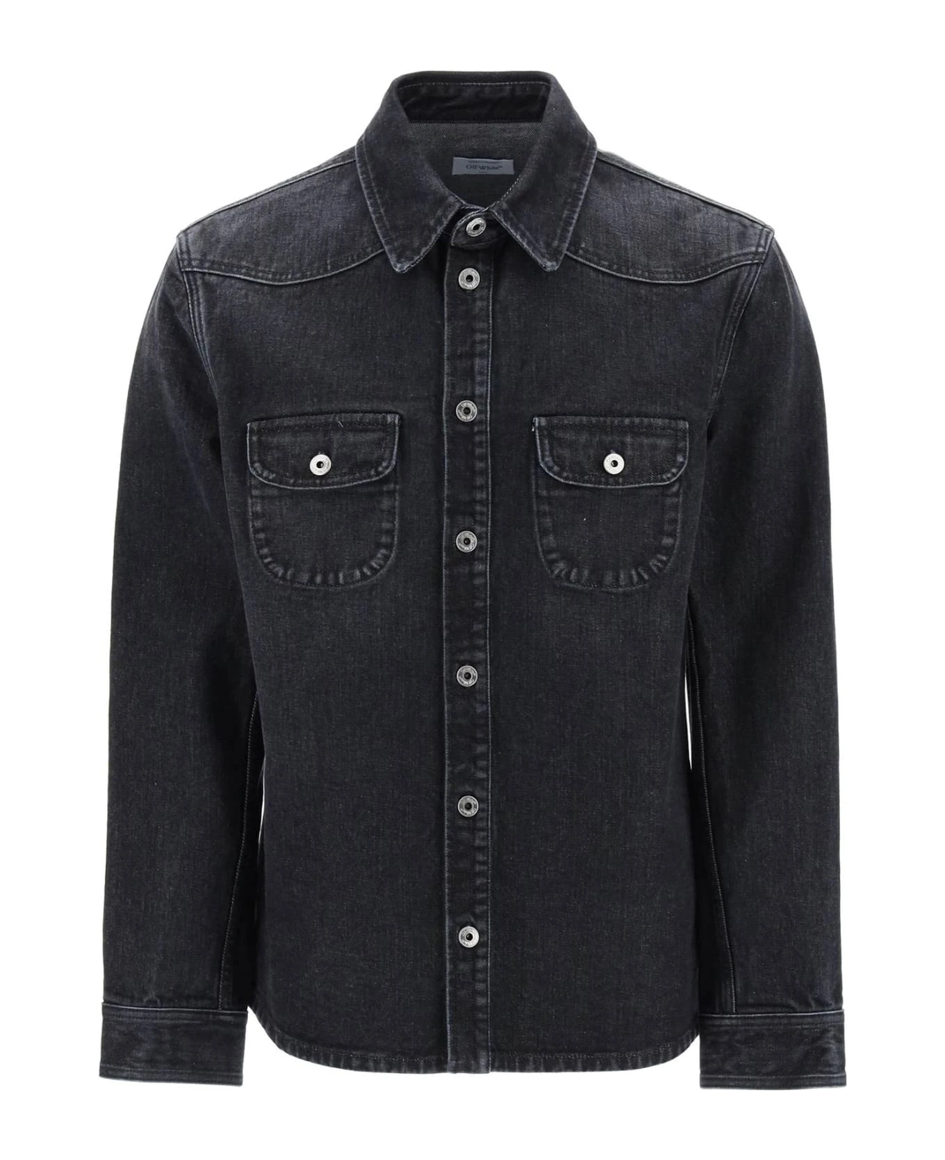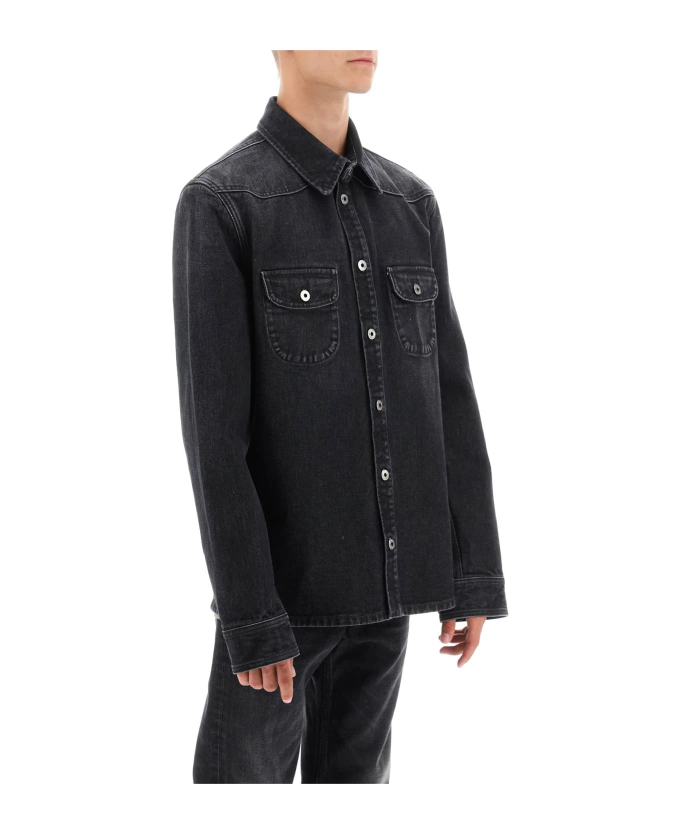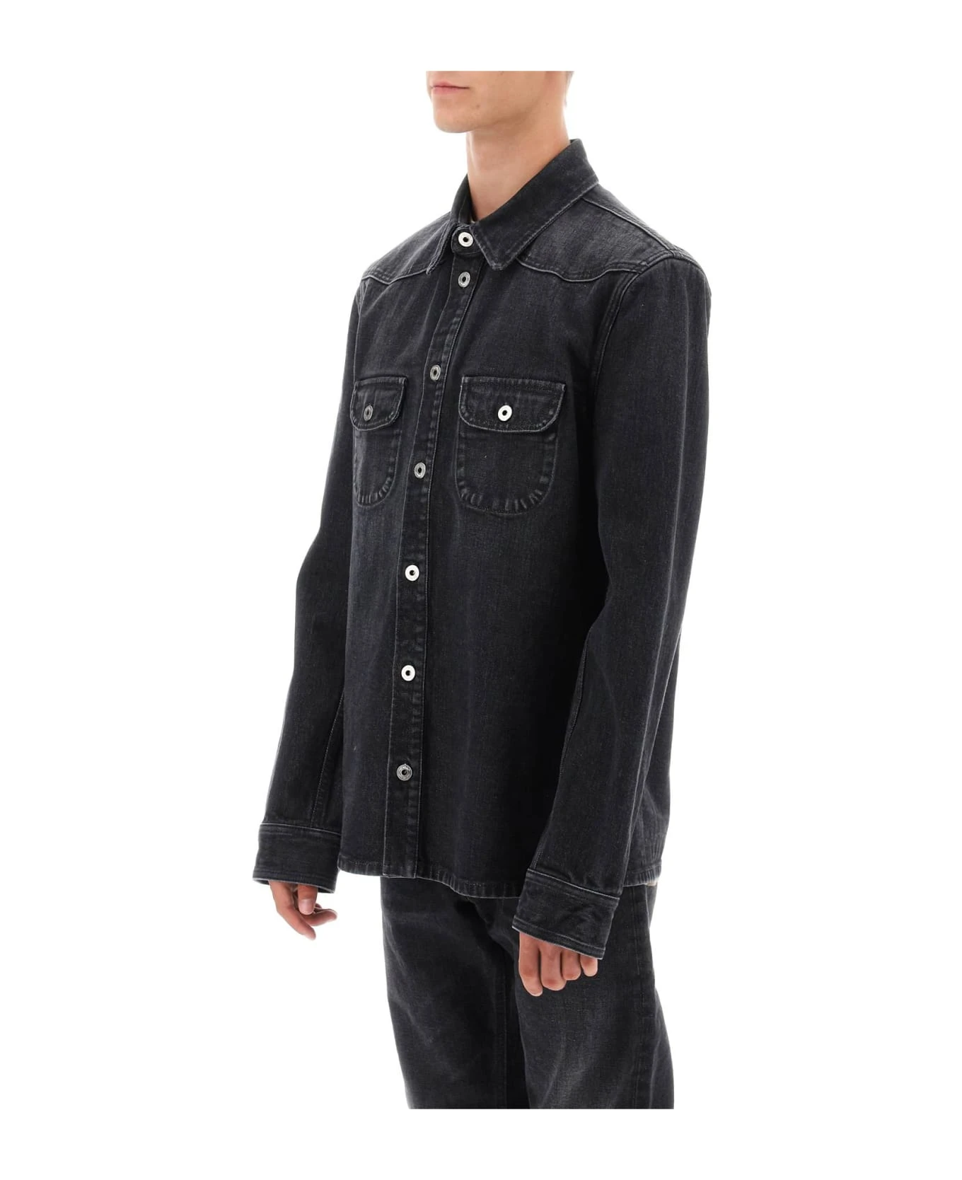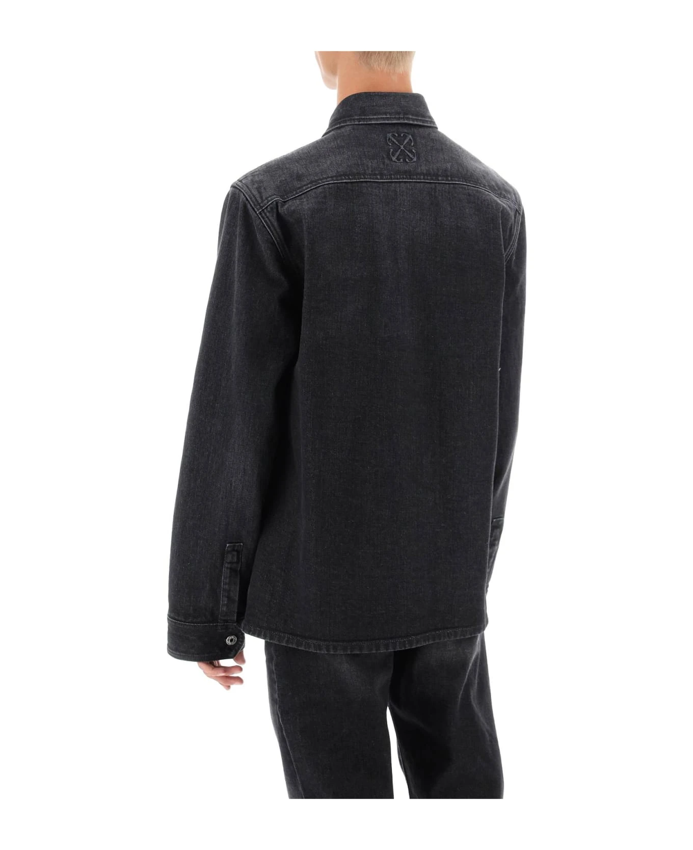 Off White overshirt crafted in pure cotton denim with dark vintage wash. It features classic collar, front button closure, chest pockets with flap and button and tonal Arrow embroidery on the upper back. Regular fit with straight cut. The model is 187 cm tall and wears size L.