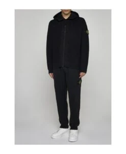 Padded pants crafted from green nylon knit and jacquard with down-filled and quilted sides. Stretch waistband and two side zip pockets. Regular fit.