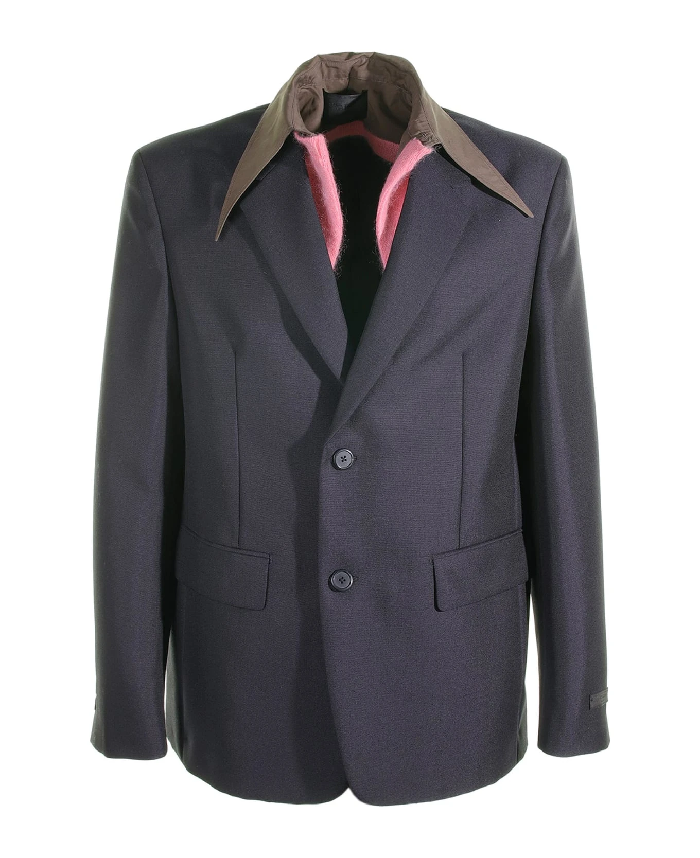 Prada Single-breasted Jacket In Blue Mohair Wool