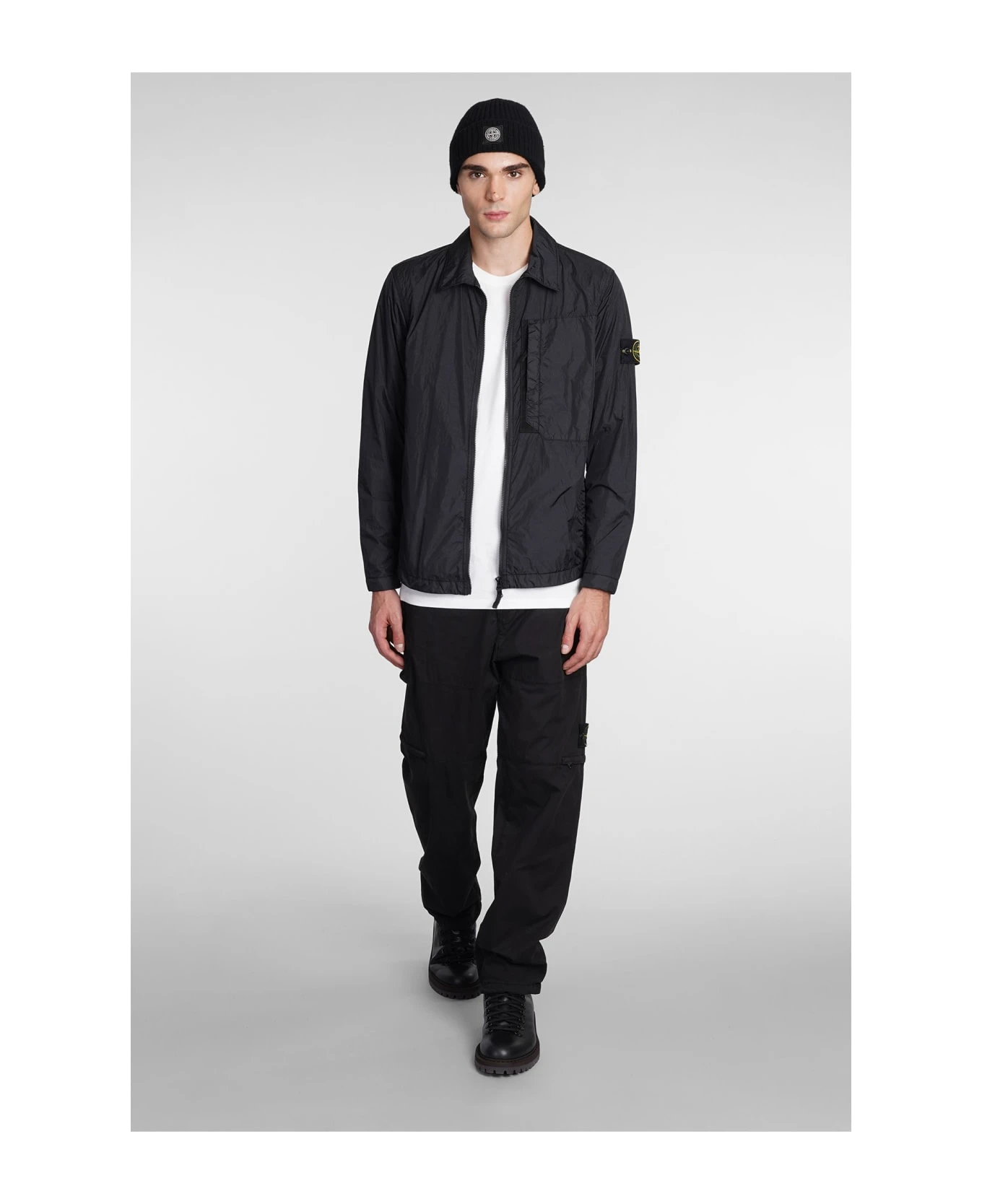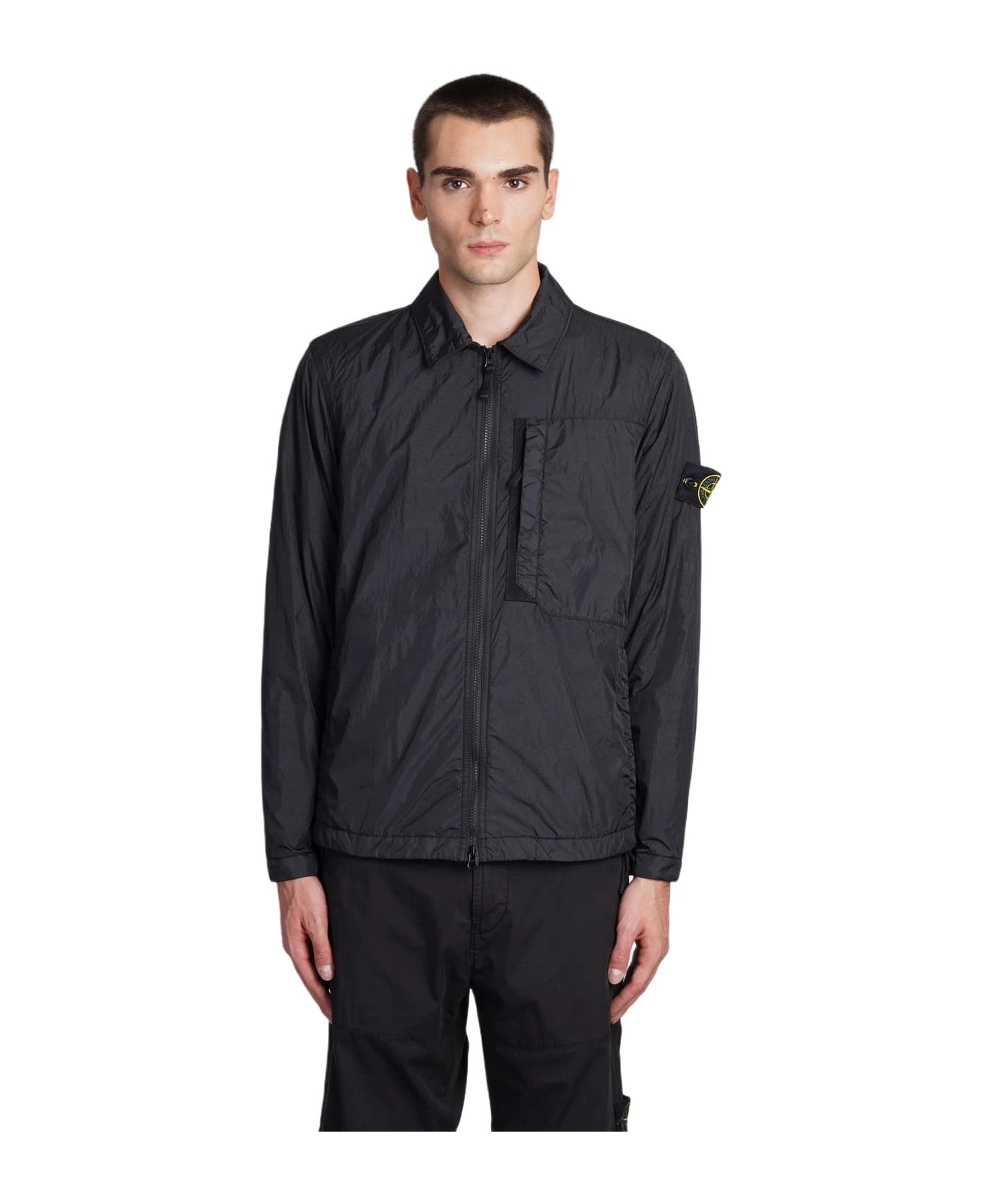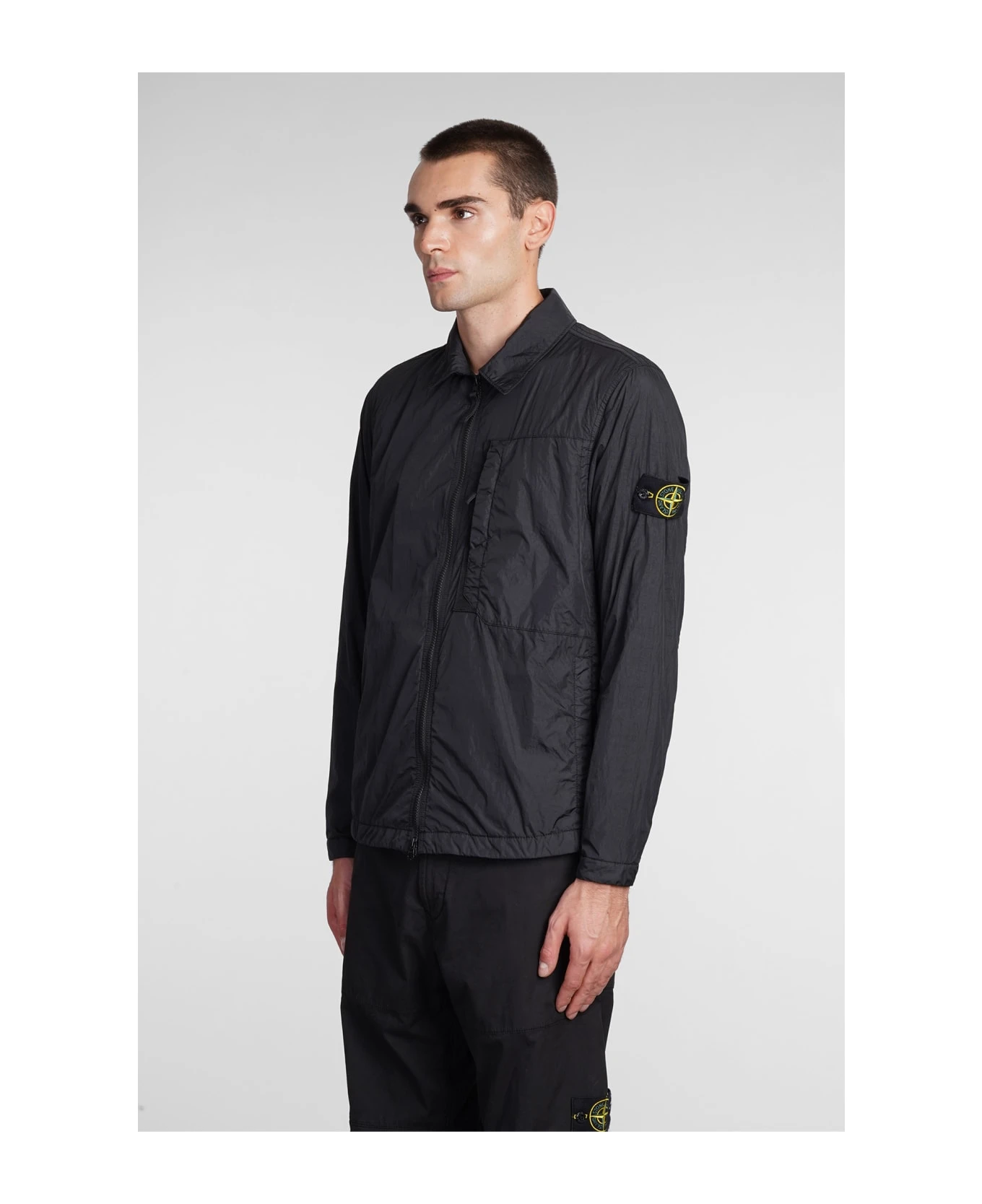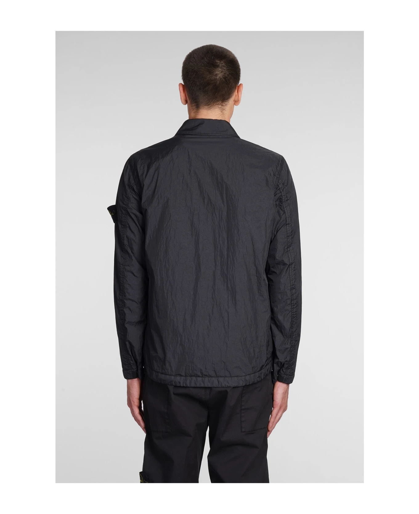 Casual jacket in black Polyuretan, collar, patch logo sleeves, elasticized cuff and bottom, breast pocket, zip clousure, 100% polyamide, Made in Vietnam, Model is 183 cm and wears size L