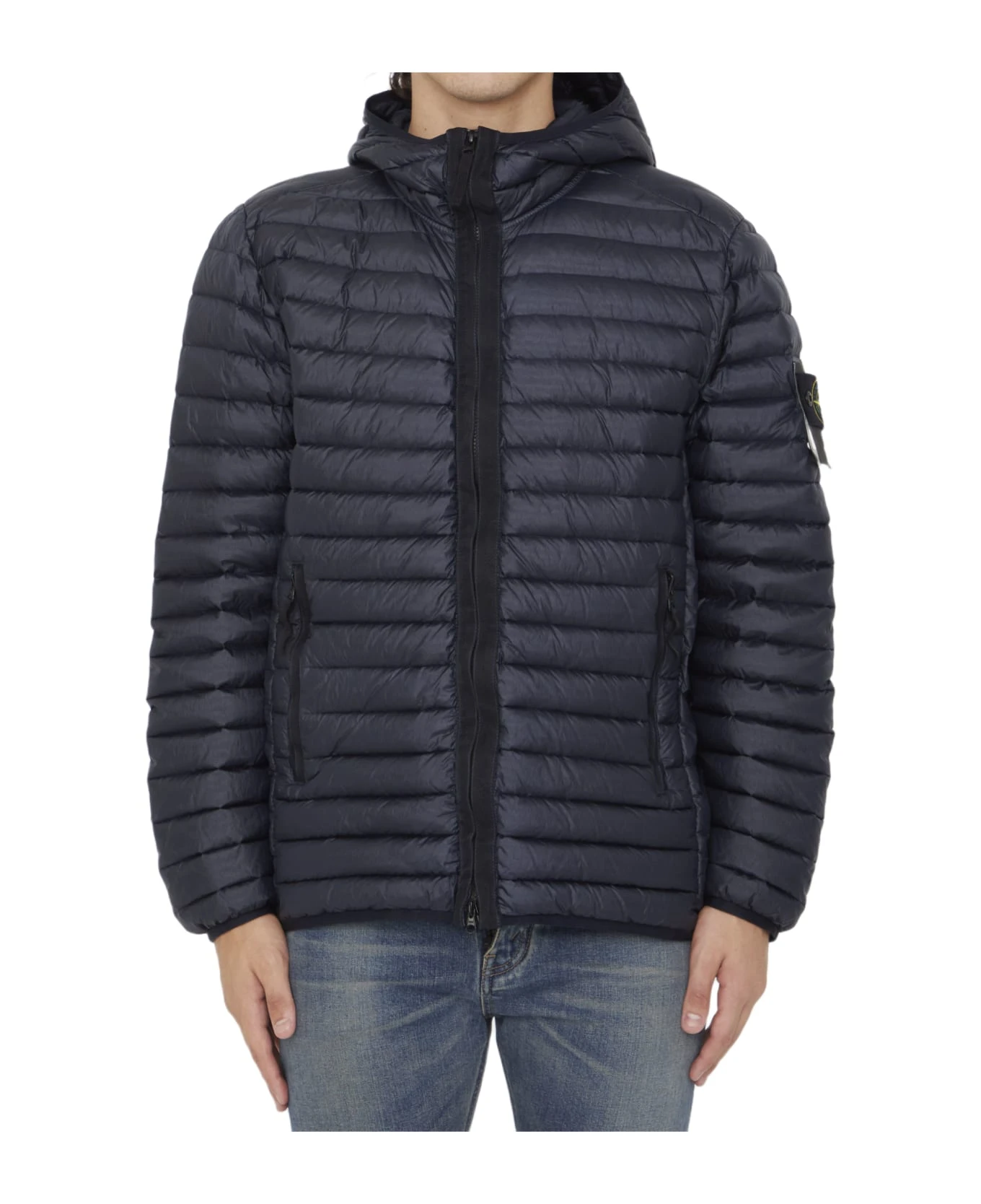 Compass-patch padded jacket black. It features with quilted and padded design, classic hood, front zip fastening, long sleeves, two side zip-fastening pockets.