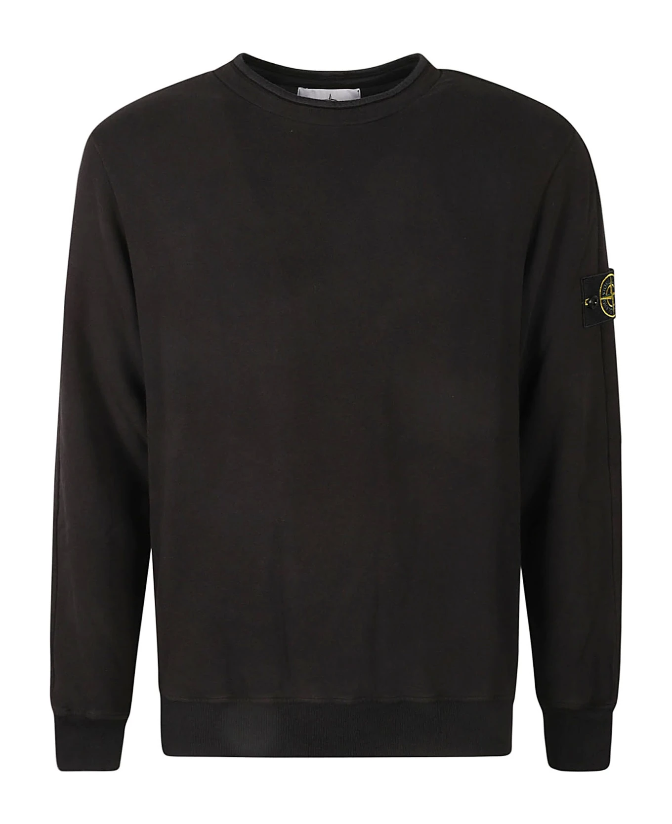 Compass-logo cotton sweatshirt from STONE ISLAND featuring black, stretch-cotton, jersey fleece, signature Compass motif, crew neck, long sleeves and straight hem.