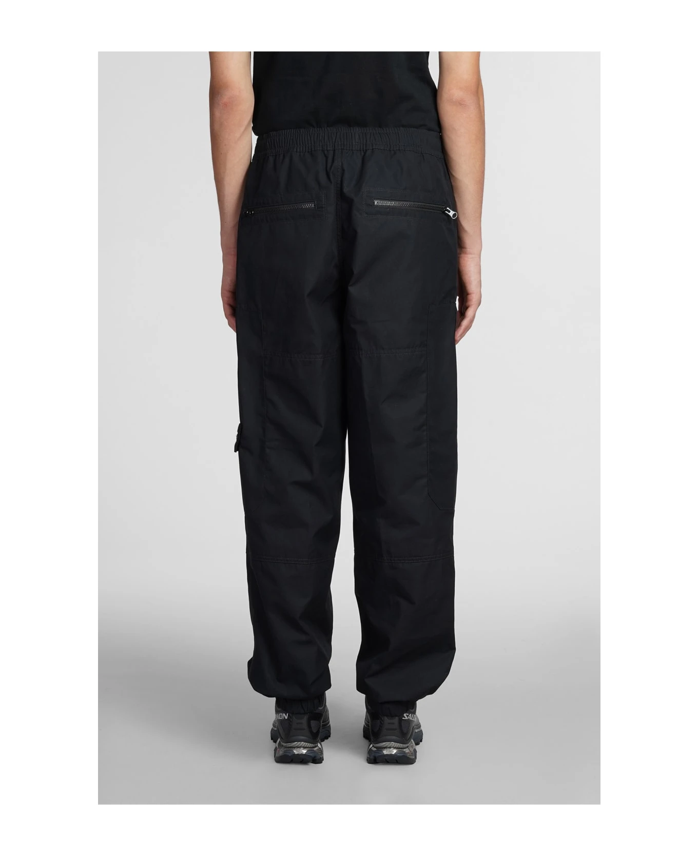 Pants in black cotton, elastic waist, zip pockets, elastic hem, side patch logo, 97% Cottone 3% Spandex, Model is 1. 83 and wears size 30