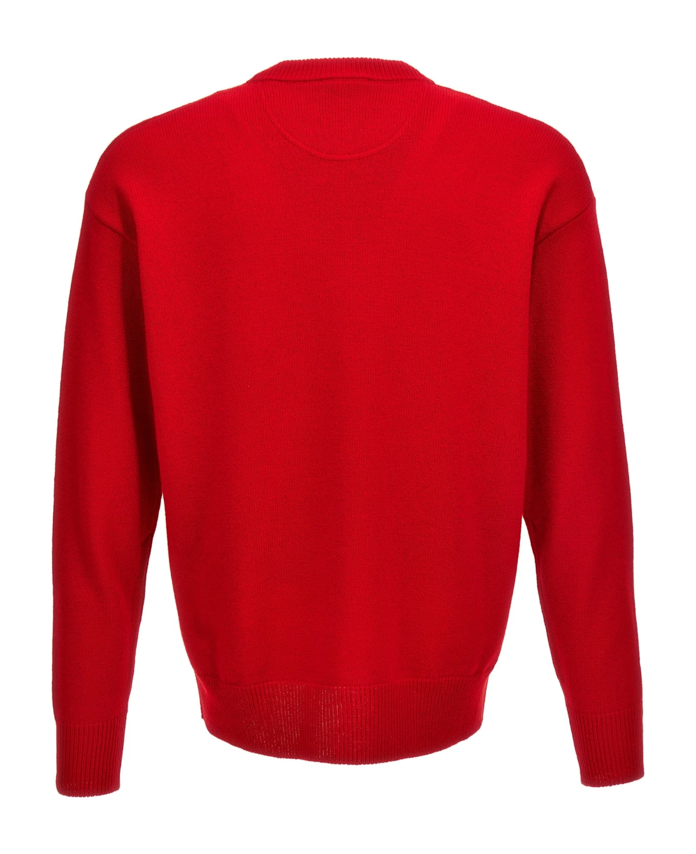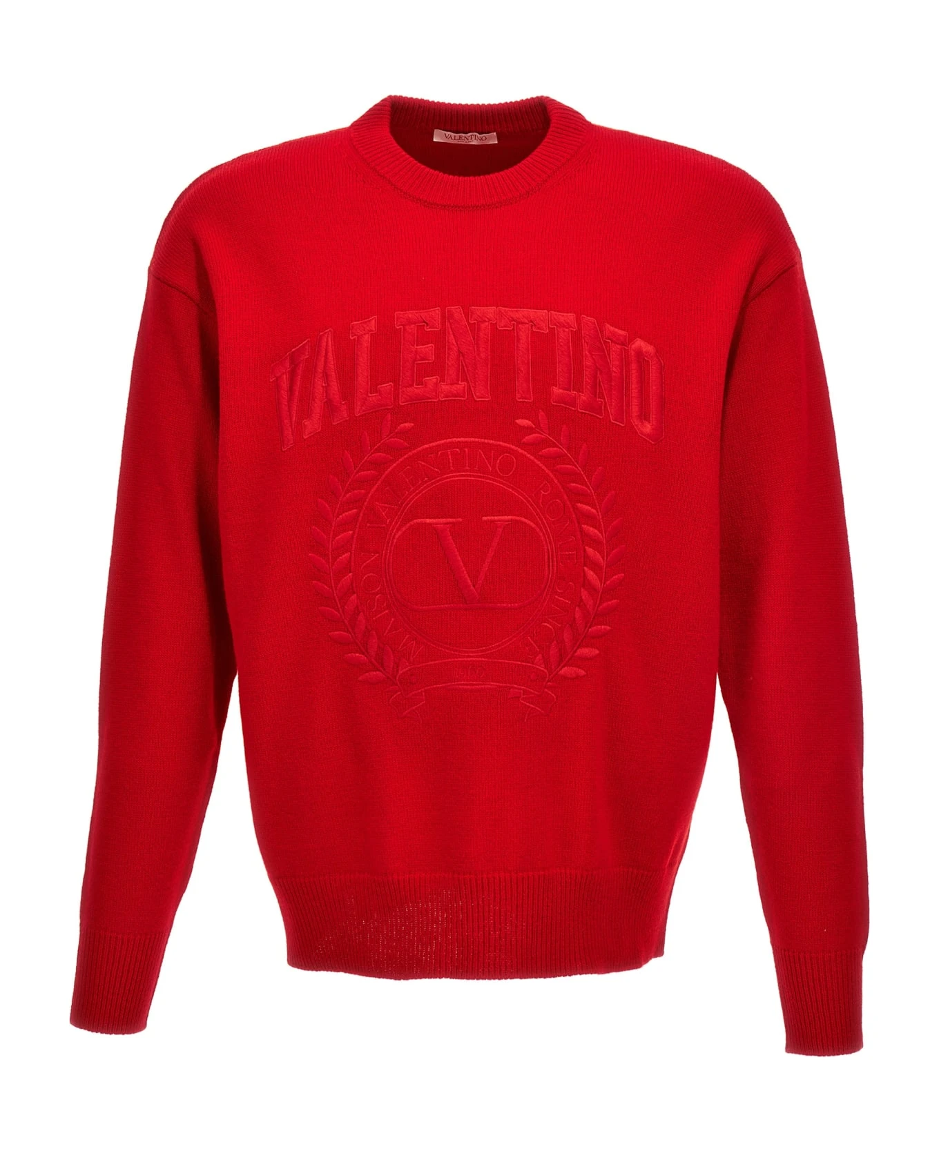 Wool sweater with tone-on-tone embroidered logo on the front, crewneck, and long cuffed sleeves.