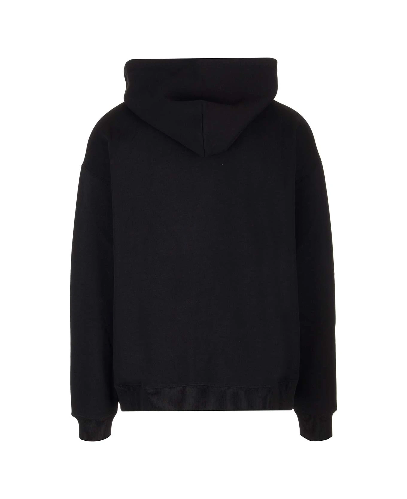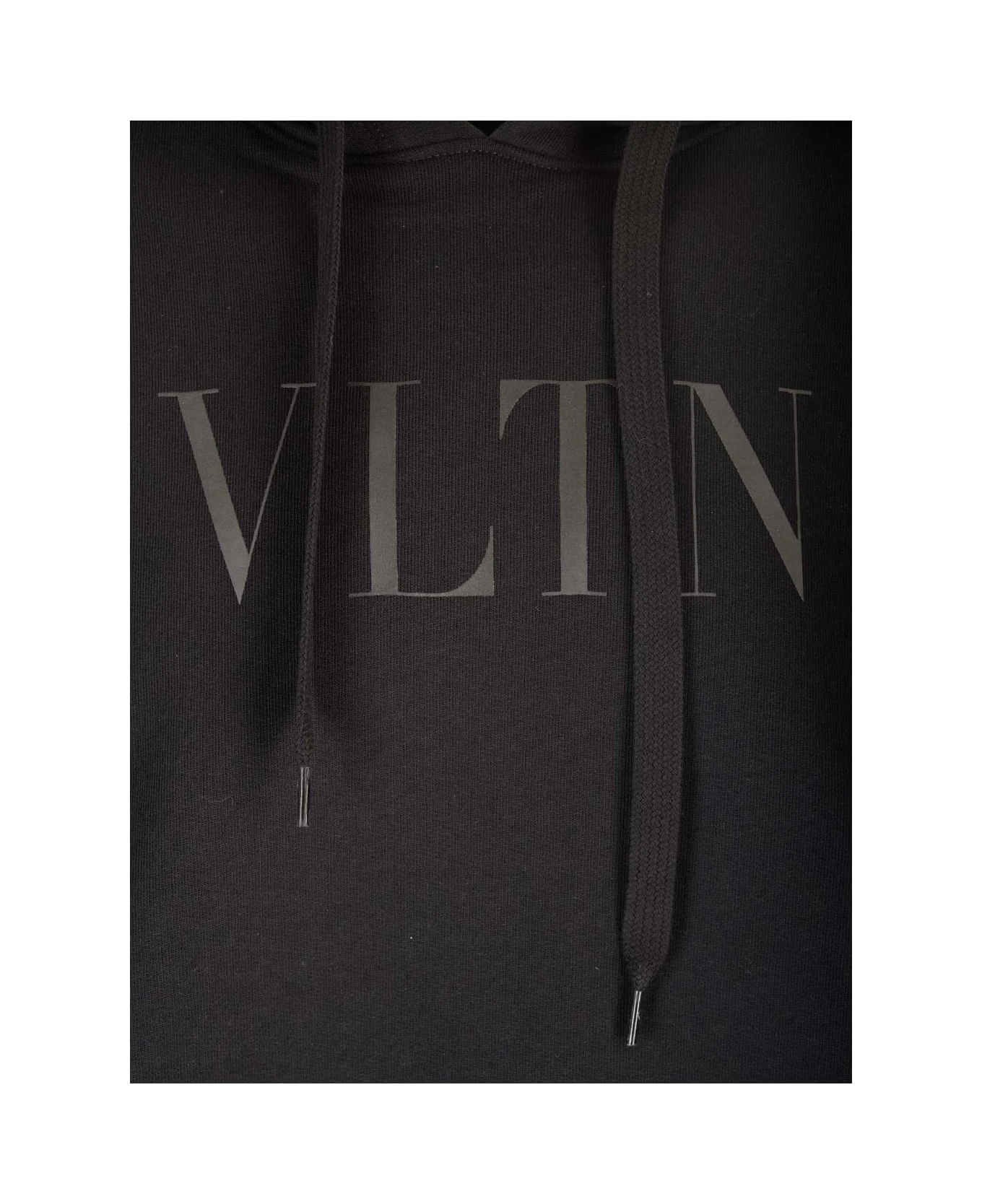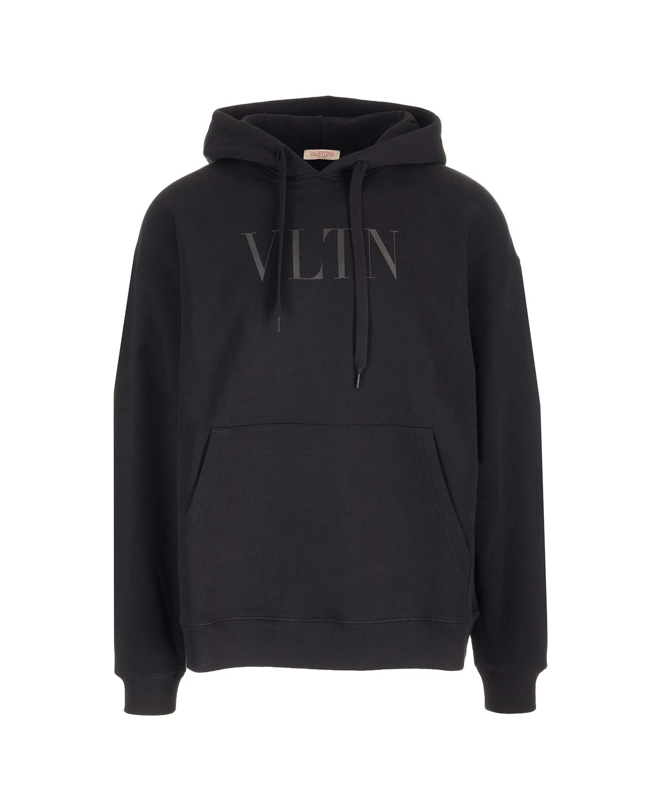 ‘VLTN’ sweatshirt from Valentino Garavani in black heavy jersey with adjustable hood and printed logo.